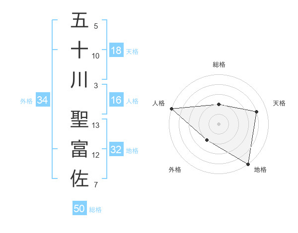 五十川 聖富佐さんを姓名の画数から五運を鑑定