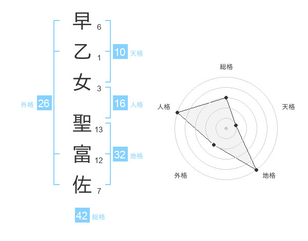早乙女 聖富佐さんの総格は42画の3点!