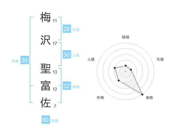 梅沢 聖富佐さんを姓名の画数から五運を鑑定