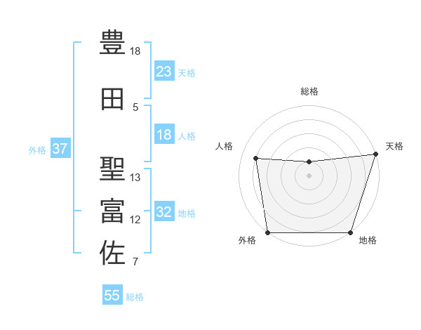 豊田 聖富佐さんを姓名の画数から五運を鑑定
