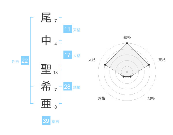 尾中 聖希亜さんの天格は11画の4点!