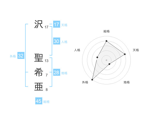 沢 聖希亜さんの天格は17画の4点!