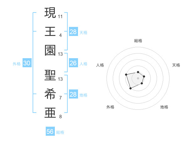 現王園 聖希亜さんを姓名の画数から五運を鑑定