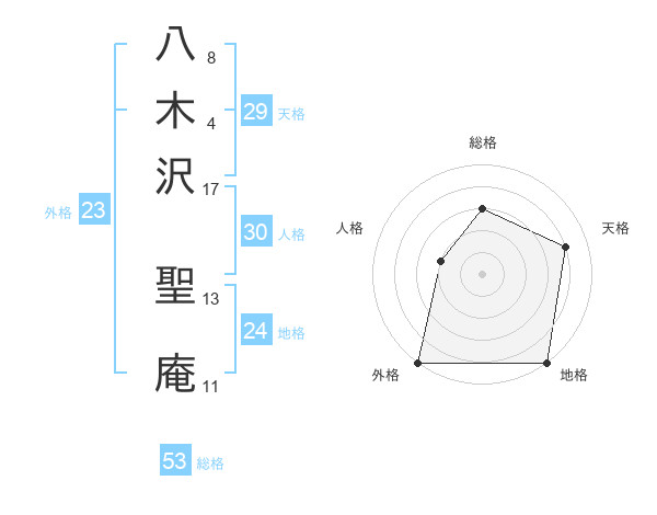 八木沢 聖庵さんの外格は23画の5点!