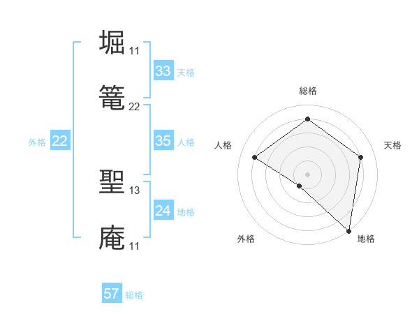 堀篭 聖庵さんの総格は57画の4点!