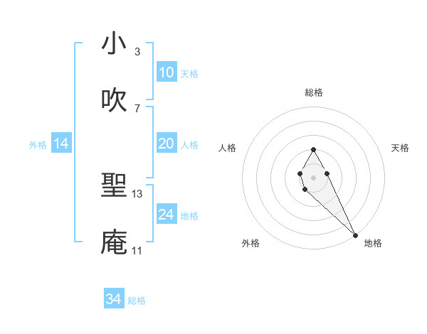 小吹 聖庵さんを姓名の画数から五運を鑑定