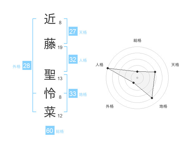 近藤 聖怜菜さんを姓名の画数から五運を鑑定