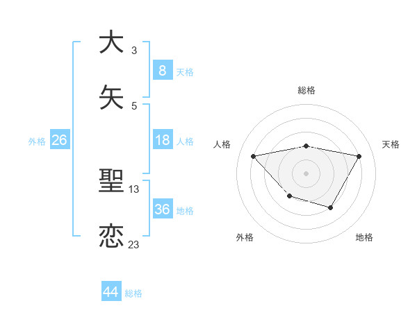 大矢 聖恋さんを姓名の画数から五運を鑑定