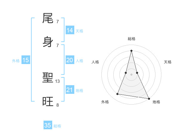 尾身 聖旺さんの地格は21画の5点!