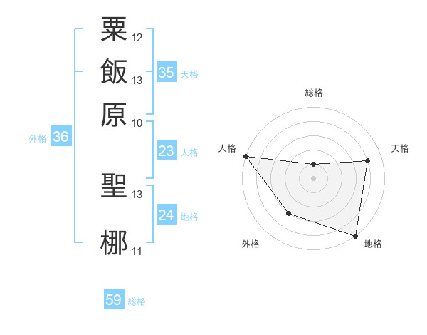 粟飯原 聖梛さんの総格は59画の1点!