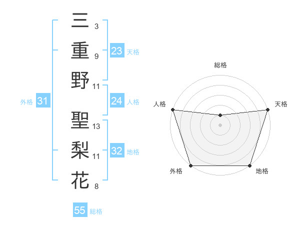 三重野 聖梨花さんを姓名の画数から五運を鑑定