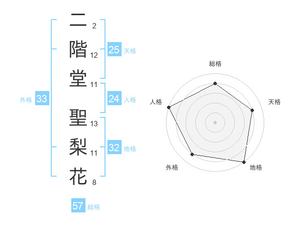 二階堂 聖梨花さんの総格は57画の4点!