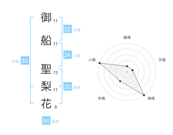 御船 聖梨花さんを姓名の画数から五運を鑑定