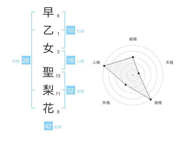 早乙女 聖梨花さんを姓名の画数から五運を鑑定