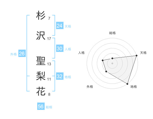 杉沢 聖梨花さんの地格は32画の5点!