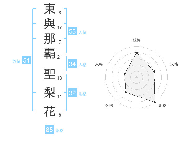 東與那覇 聖梨花さんを姓名の画数から五運を鑑定