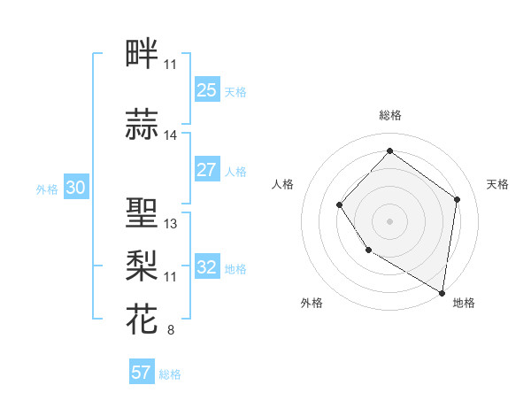 畔蒜 聖梨花さんの地格は32画の5点!