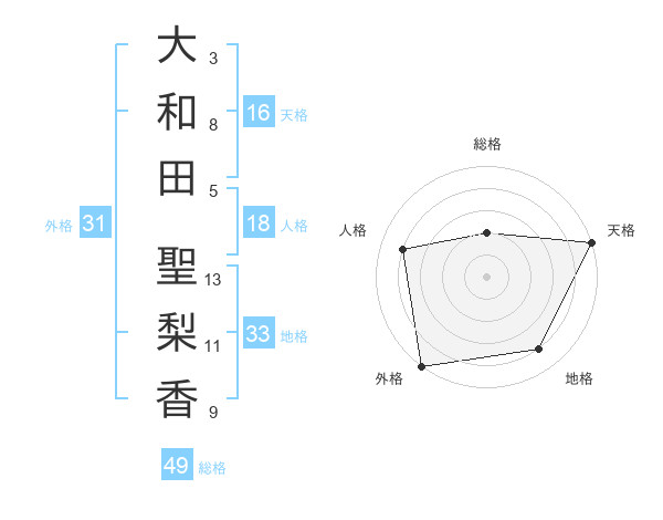 大和田 聖梨香さんの外格は31画の5点!