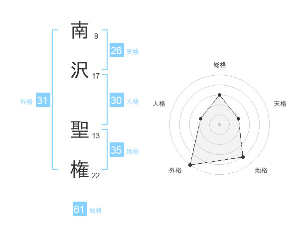 南沢 聖権さんを姓名の画数から五運を鑑定