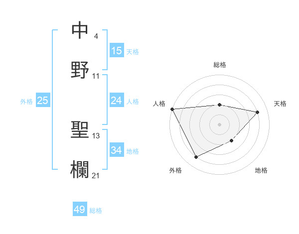 中野 聖欄さんを姓名の画数から五運を鑑定