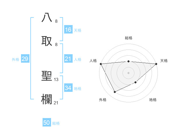 八取 聖欄さんを姓名の画数から五運を鑑定