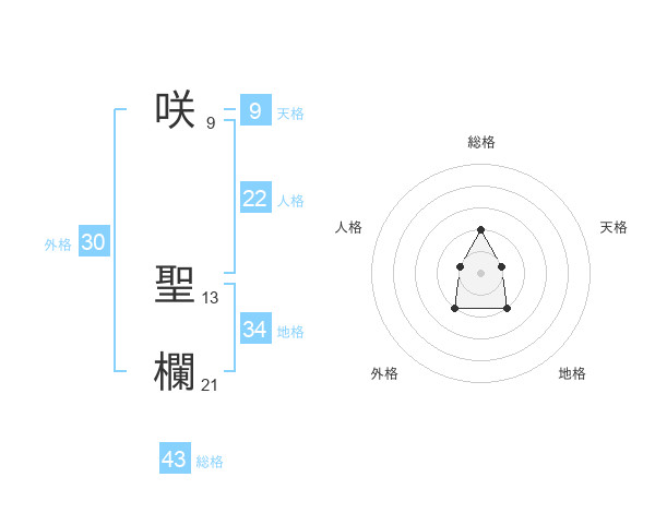 咲 聖欄さんの総格は43画の2点!