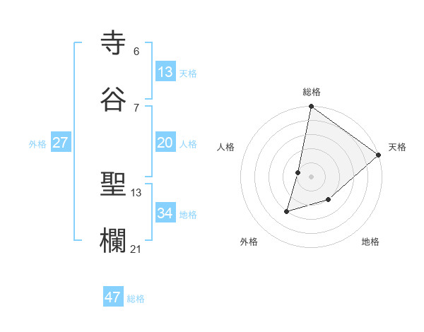 寺谷 聖欄さんの総格は47画の5点!