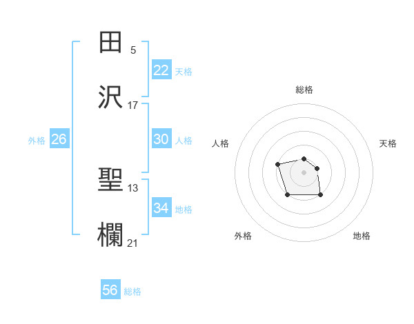 田沢 聖欄さんを姓名の画数から五運を鑑定
