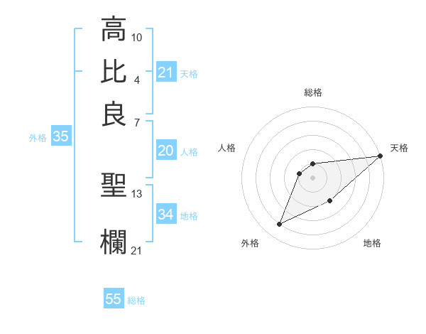 高比良 聖欄さんの天格は21画の5点!