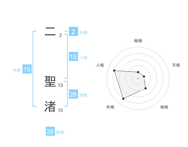 二 聖渚さんの外格は15画の4点!