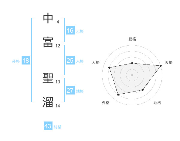 中富 聖溜さんの総格は43画の2点!