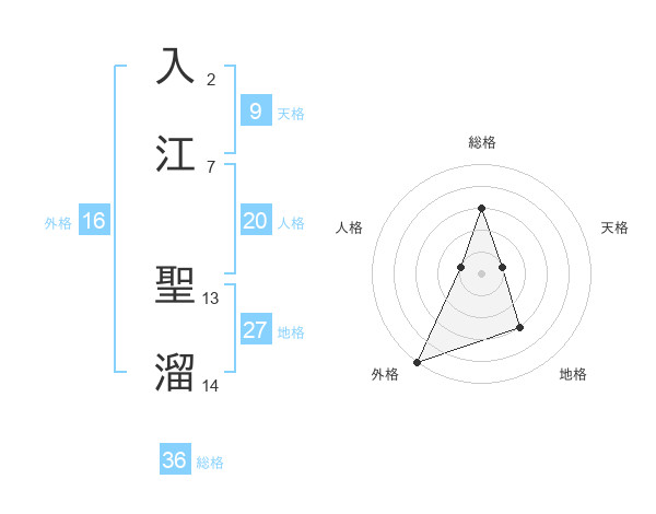 入江 聖溜さんの外格は16画の5点!