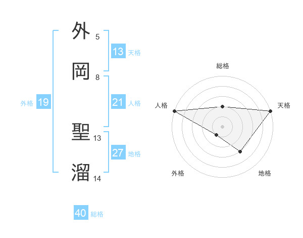 外岡 聖溜さんの天格は13画の5点!