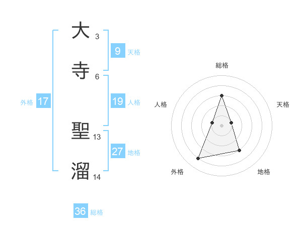 大寺 聖溜さんの外格は17画の4点!