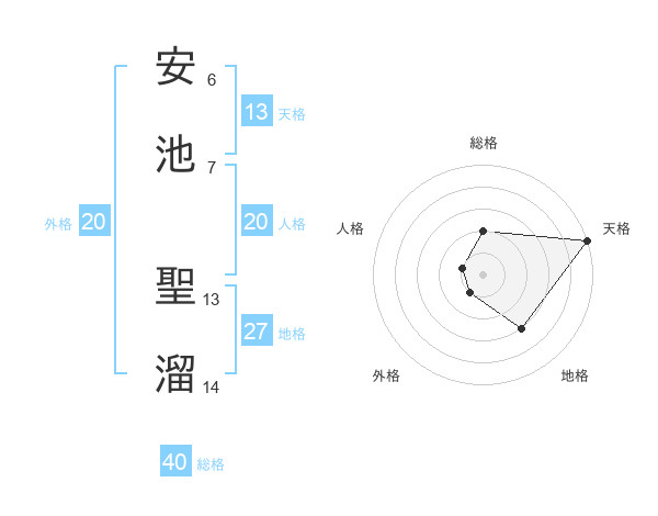 安池 聖溜さんの総格は40画の2点!