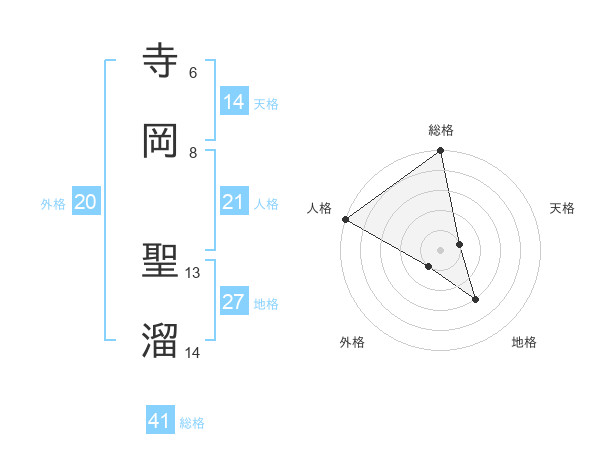 寺岡 聖溜さんの総格は41画の5点!