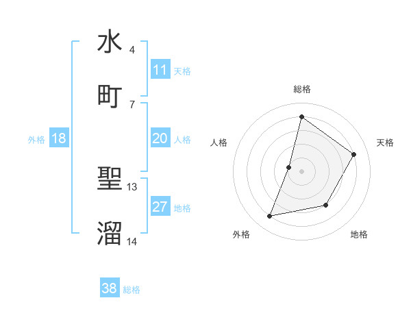 水町 聖溜さんの総格は38画の4点!