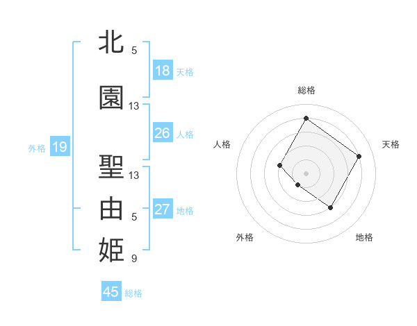北園 聖由姫さんを姓名の画数から五運を鑑定