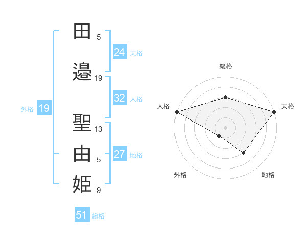 田邉 聖由姫さんを姓名の画数から五運を鑑定