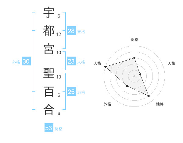 宇都宮 聖百合さんを姓名の画数から五運を鑑定