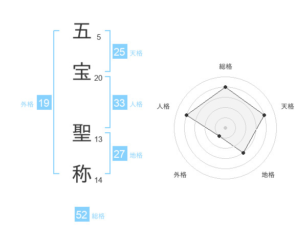 五宝 聖称さんの総格は52画の4点!