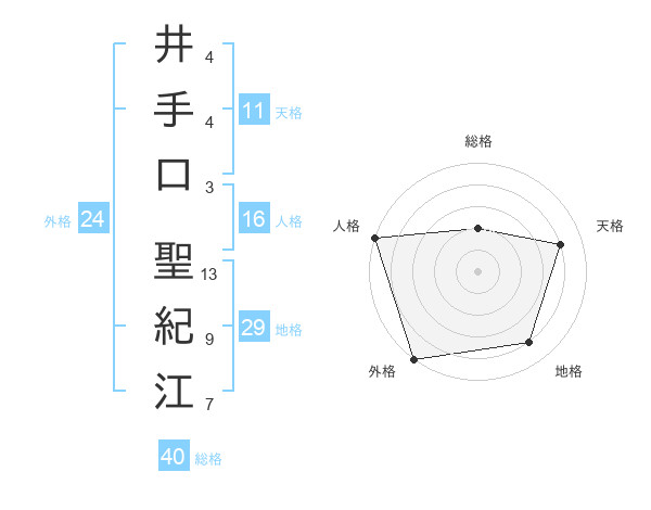 井手口 聖紀江さんの外格は24画の5点!
