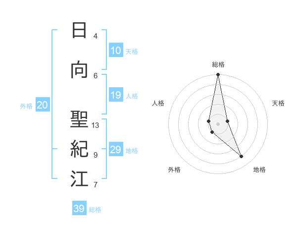 日向 聖紀江さんの総格は39画の5点!