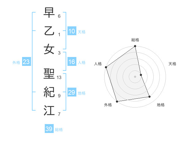 早乙女 聖紀江さんの総格は39画の5点!