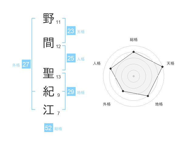 野間 聖紀江さんを姓名の画数から五運を鑑定