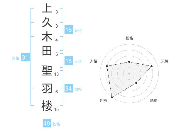 上久木田 聖羽楼さんの外格は31画の5点!