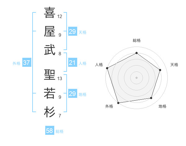 喜屋武 聖若杉さんを姓名の画数から五運を鑑定