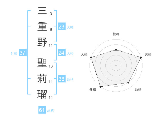 三重野 聖莉瑠さんを姓名の画数から五運を鑑定