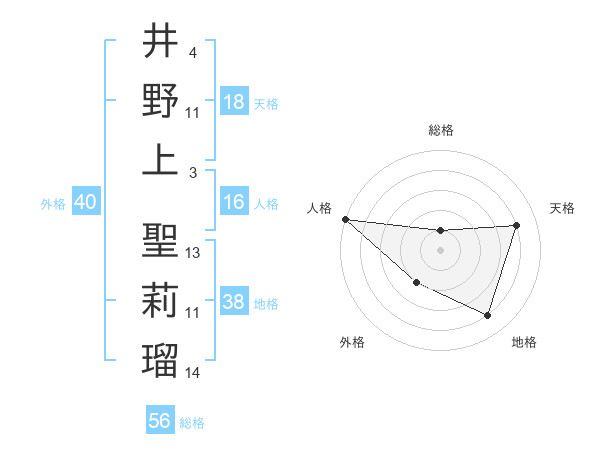 井野上 聖莉瑠さんを姓名の画数から五運を鑑定
