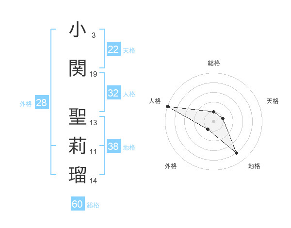 小関 聖莉瑠さんを姓名の画数から五運を鑑定